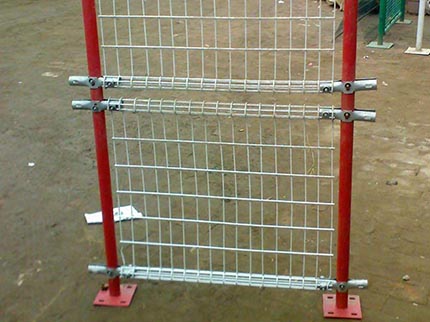 雙圈護欄網是用冷拔低碳鋼絲焊接成網筒狀卷邊與網面一體,采用鍍鋅進行防腐處理,具有很強的耐腐蝕性,然后進行噴、浸塑,各種顏色的噴、浸塑;最后連接附件與鋼管支柱固定。